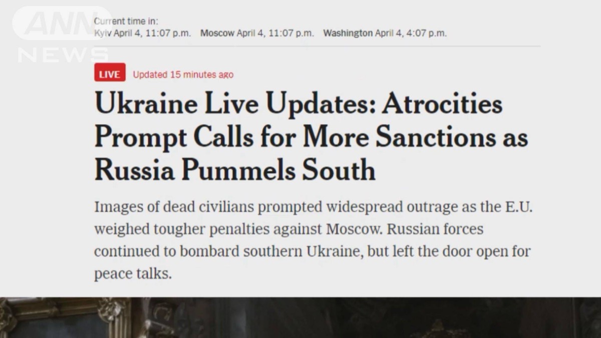 ニューヨーク・タイムズが「ブチャ虐殺」と表現するなど、ロシアへの国際社会の非難が強まるという見方が大勢です。