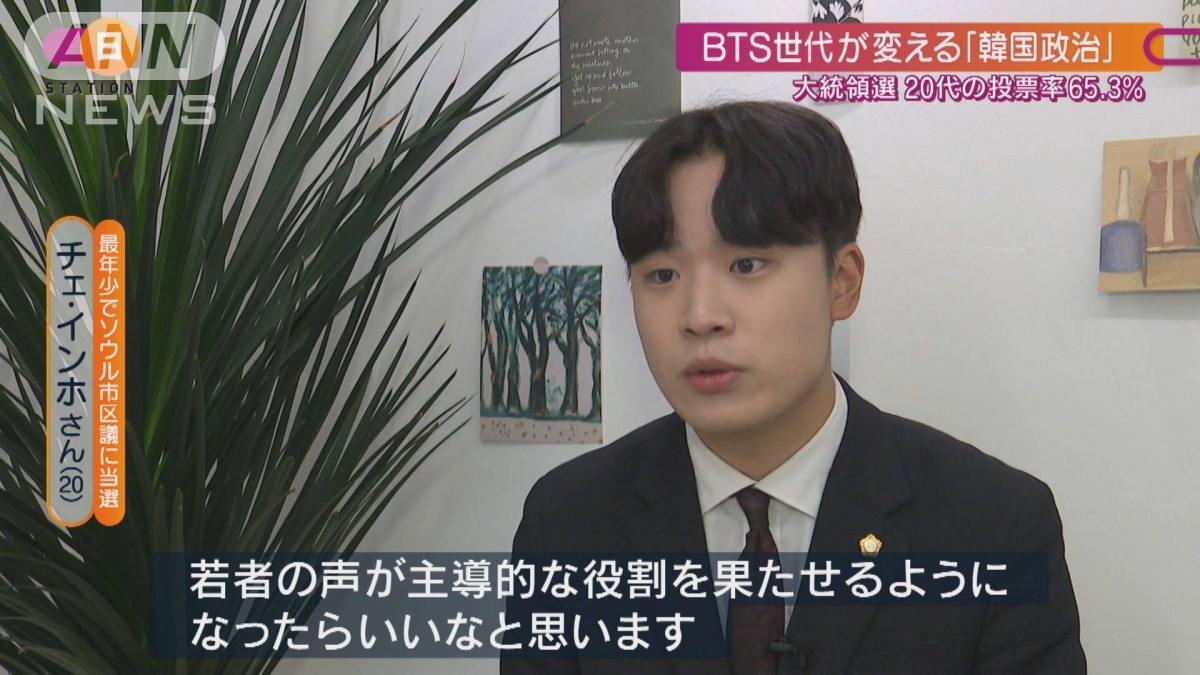 “若者の政治参加”が進む韓国。今月1日、ソウル市の区議選で、20歳の大学生チェ・インホさんが最年少で当選しました。日本では衆議院議員と地方議員の被選挙権は25歳以上ですが、韓国では今年1月、18歳以上に引き下げられています。