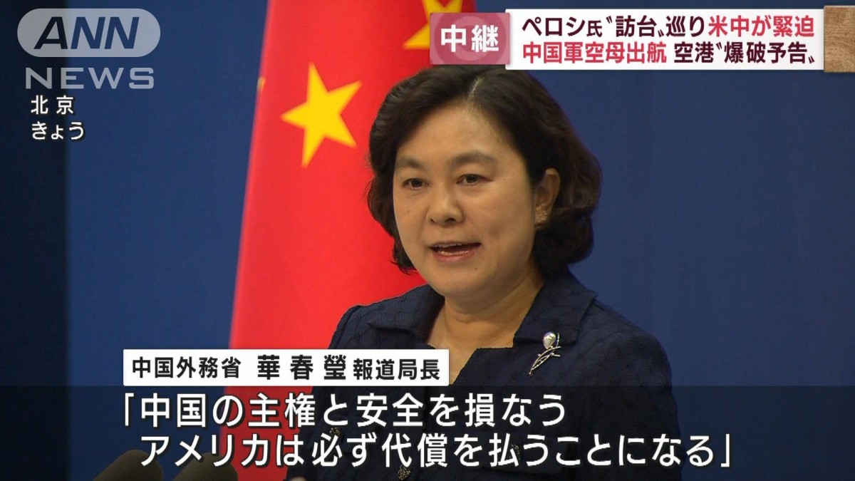 これは今月2日が極めて重要なタイミングだという中国側のメッセージで、ペロシ下院議長の訪問について「中国の主権と安全を損なう。アメリカは必ず代償を払うことになる」と警告しました。