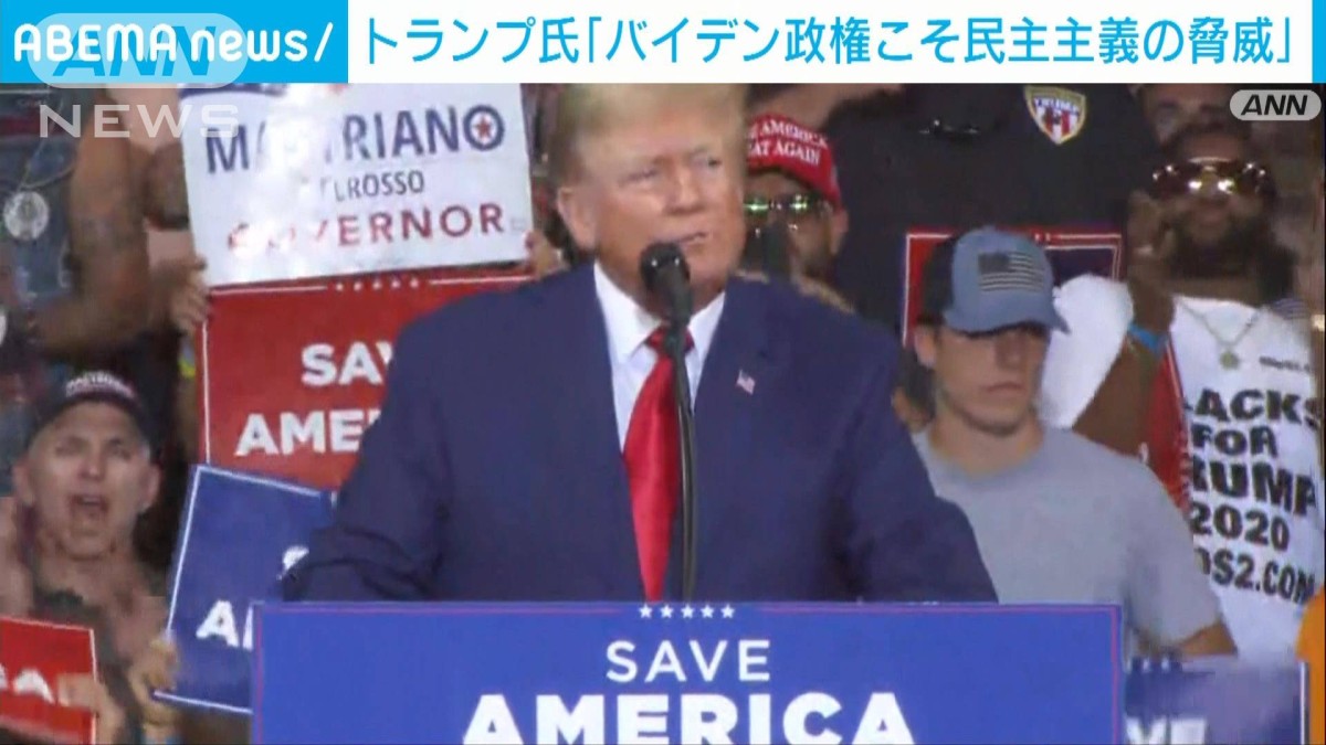 アメリカのトランプ前大統領が11月の中間選挙に向けた集会で演説し、バイデン政権こそが民主主義の脅威だと厳しく批判しました。