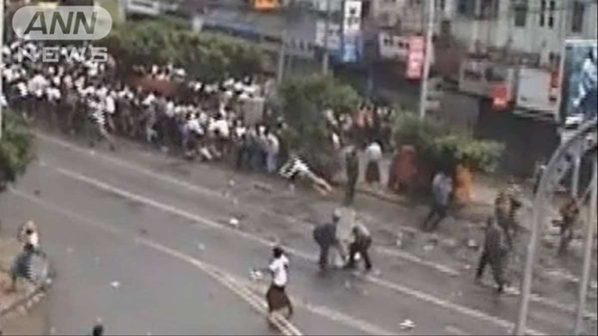 軍の兵士に迫られ、デモの人たちが逃げ出そうとする中、カメラで兵士らを映していた長井さんは、跳ねるように地面に倒れ、近くの兵士の銃からは白い煙が上がっていた。映像は、倒れてもなお、カメラを兵士の方向に向ける長井さんの姿をとらえていた。