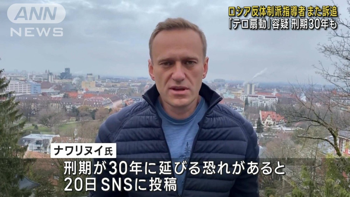 ナワリヌイ氏は20日、「テロの扇動」や「ナチス主義の復興」などの疑いで新たに刑事訴追され、刑期が30年に延びる恐れがあるとSNSに投稿しました。