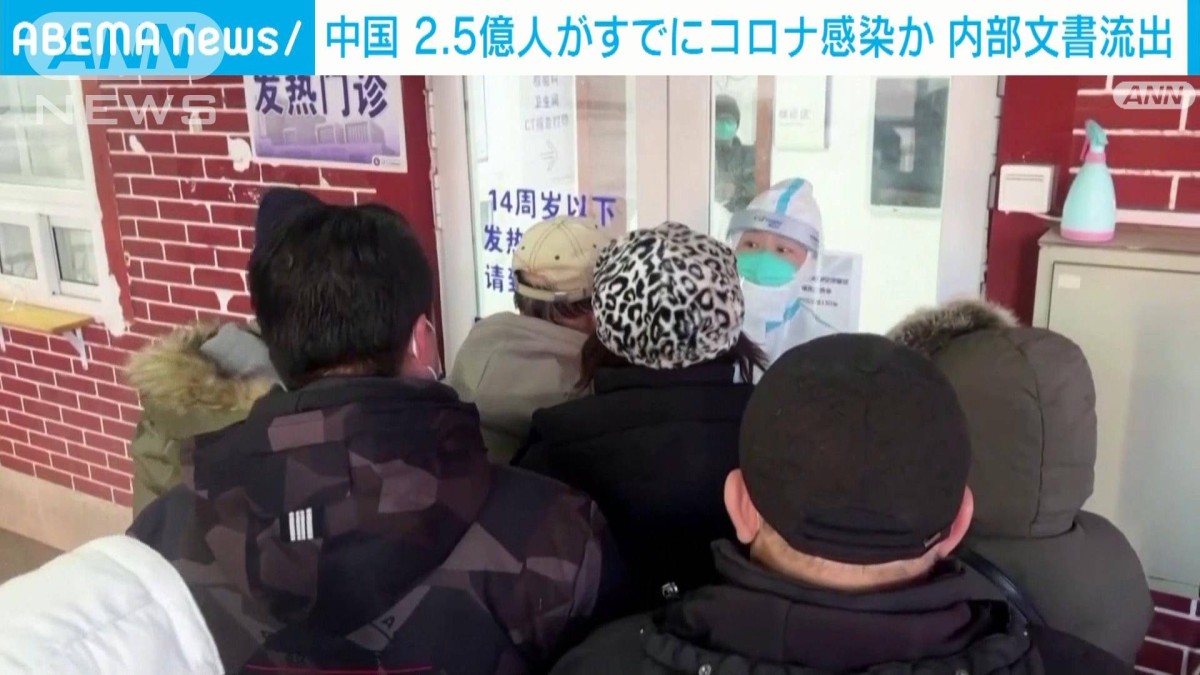 新型コロナの規制緩和後感染が急拡大している中国で、12月以降、2億5000万人近くがすでに感染したとする内部文書が流出したと複数のメディアが報じました。
