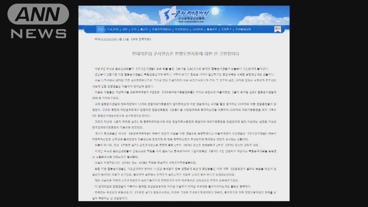 13日から始まった春の米韓合同軍事演習について、北朝鮮が対外サイトを通じ「朝鮮半島情勢を破局へと導く」と批判しました。