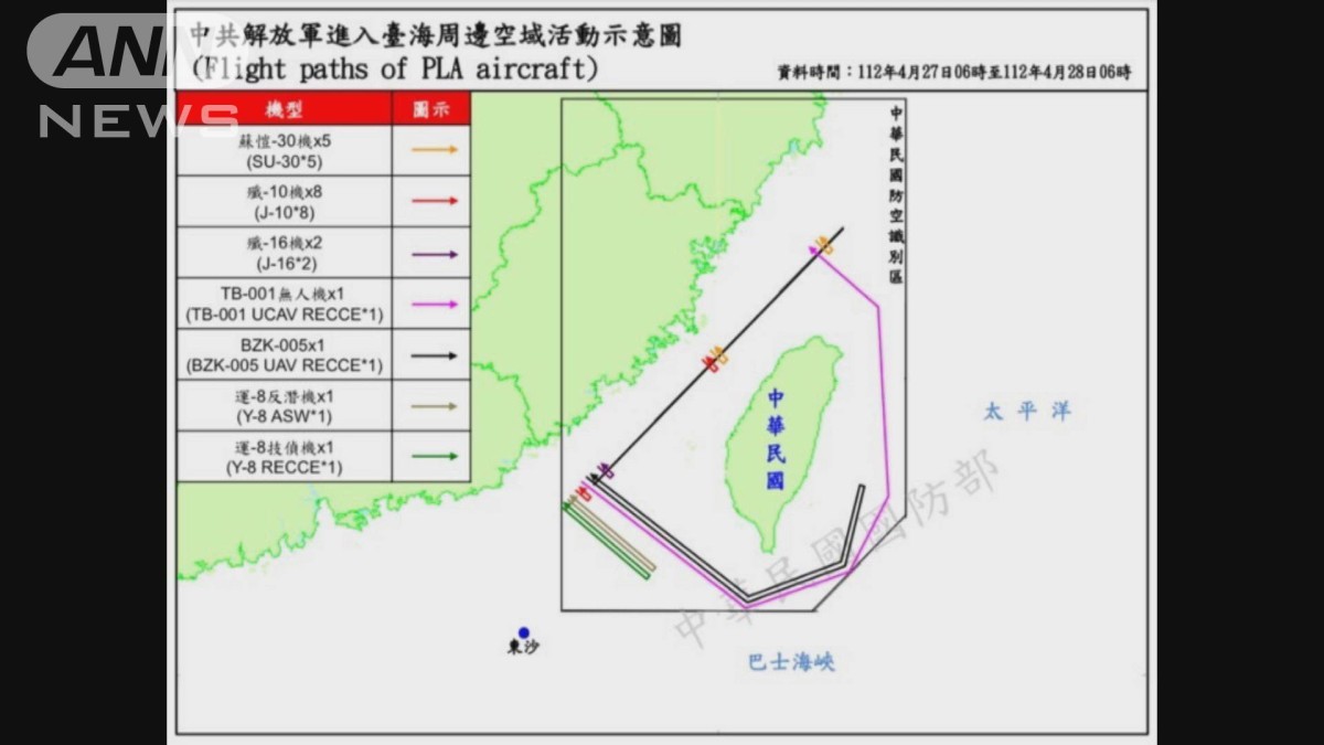そのうち1機は偵察型のドローンで台湾の周辺を反時計回りにぐるりと回るコースで飛行したと発表しました。
