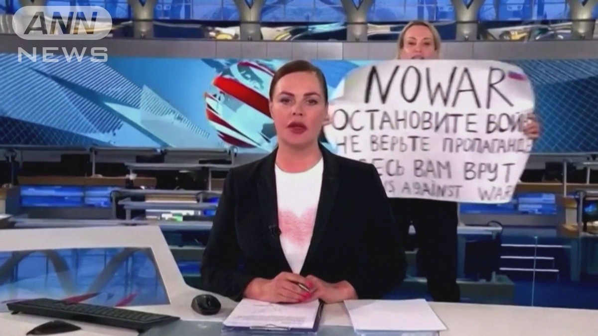 元ロシア国営テレビの職員オフシャンニコワさんは、ロシア軍がウクライナに侵攻した直後の去年3月、ニュース番組の生放送中にスタジオで「戦争反対」などと書かれた紙を掲げ、罰金刑を科されました。
