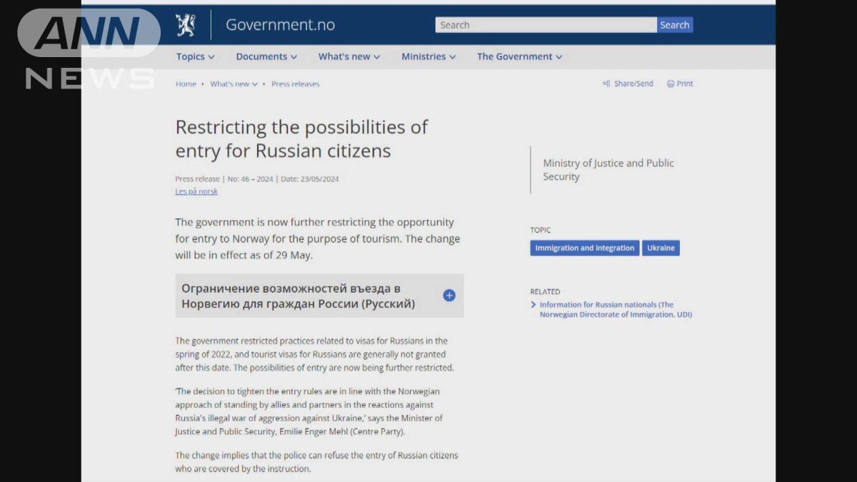 北欧のノルウェー政府はロシアがウクライナ侵攻を続けていることを受け、観光目的などのロシア人の入国を禁止すると明らかにしました。