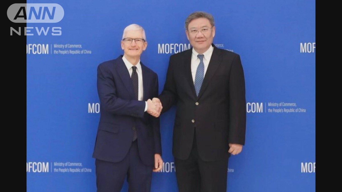 中国ではアップル社の「iPhone」のシェアが落ちていて、訪中にはテコ入れを図る狙いもあるとみられます。
