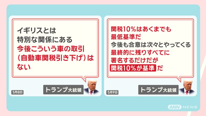また、トランプ大統領は関税措置をめぐる交渉でイギリスと合意したと発表しましたが、日本への交渉の影響についても見ていきます。