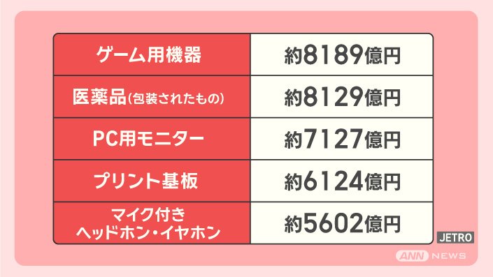 一方、対日本の貿易収支は約9兆9265億円の赤字となっています。
