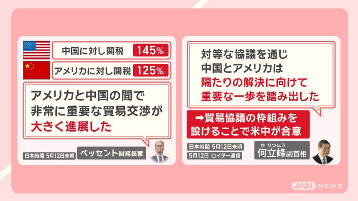 ■トランプ関税 米中が初協議「大きく進展」145%vs125%の行方