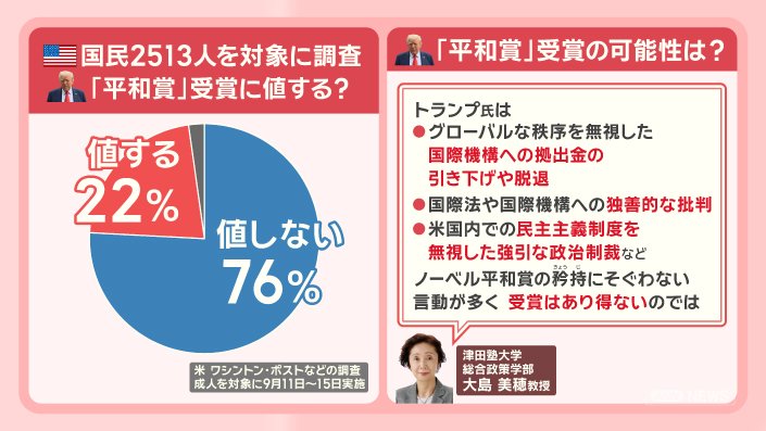 ■トランプ氏 オバマ氏意識?米国民76%「受賞値しない」
