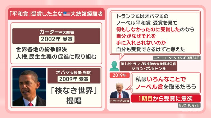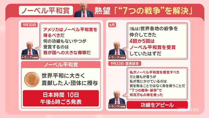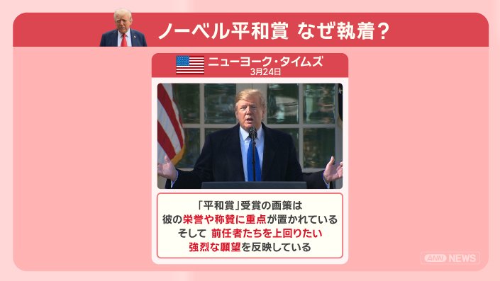 ■トランプ氏「私が受賞すべき」功績主張 各国首脳が推薦