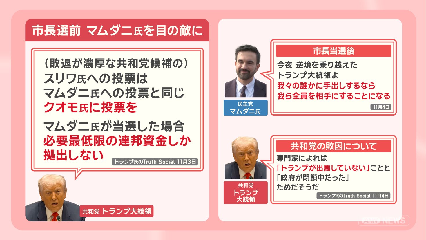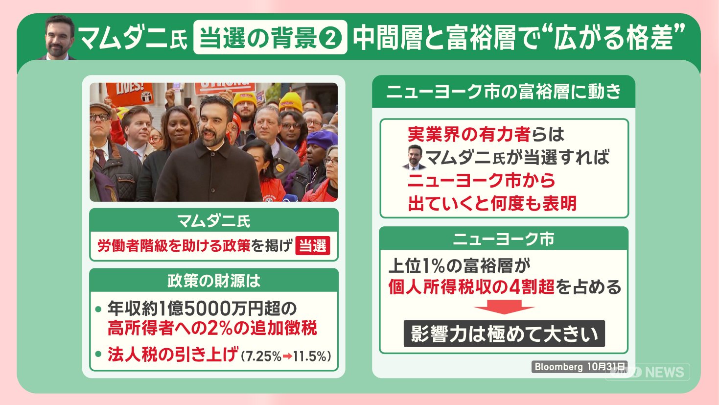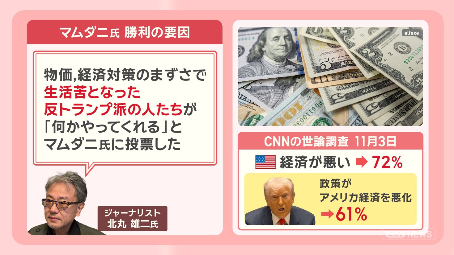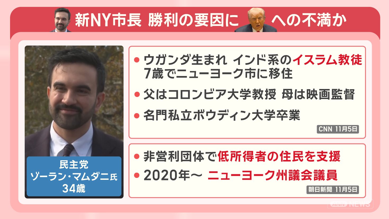 国際 モーニングショー 2025年11月7日 16:00 新NY市長にマムダニ氏 勝利の要因はトランプ氏への不満?市民直撃 インフレの実態 広告 1■無名から大逆転 NY市長にマムダニ氏 トランプ氏に逆風? この記事の写真は12枚 ■マムダニ新NY市長の主な政策 労働者階級の負担軽減へ ■NYは衝撃の物価高 中間層 マムダニ氏の政策に共感 ■マムダニ氏 広がる格差を是正へ 富裕層のNY離れも!? (「羽鳥慎一モーニングショー」2025年11月7日放送分より) 広告 スクープ投稿 トップ 国際 アメリカ 記事