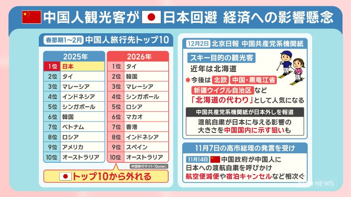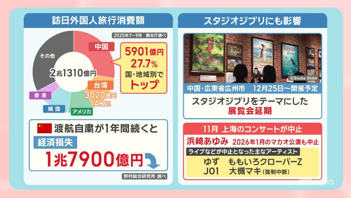 ■訪日中国人減少 1.7兆円損失 ライブ中止も 経済へ影響