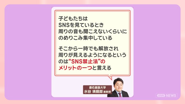 「子どもたちは、SNSを見ているとき、周りの音も聞こえないくらいに、のめりこみ集中している。そこから一時でも解放され、周りが見えるようになるというのは、“SNS禁止法”のメリットの一つと言える」