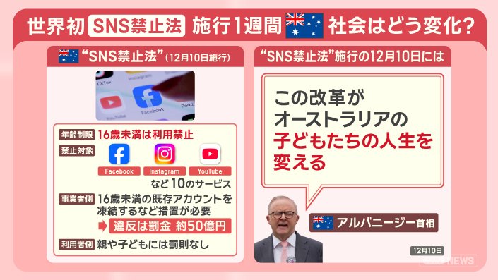オーストラリアが、世界で初めて16歳未満のSNSの利用を禁止する法律を施行してから、1週間が経ちました。