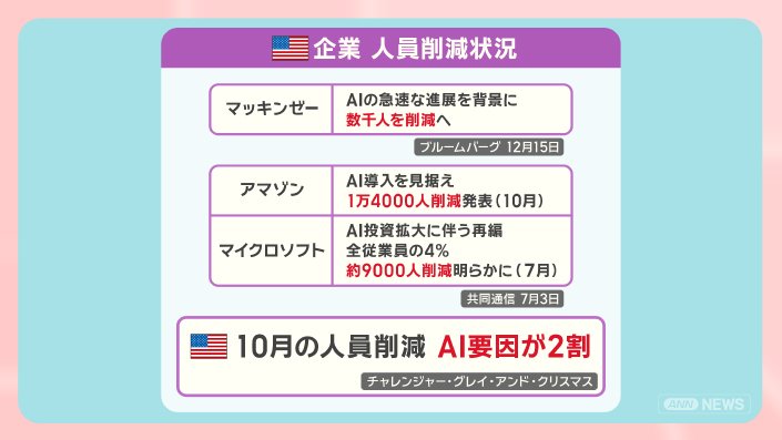 アメリカの10月の人員削減は、AI要因が2割を占めるということです。