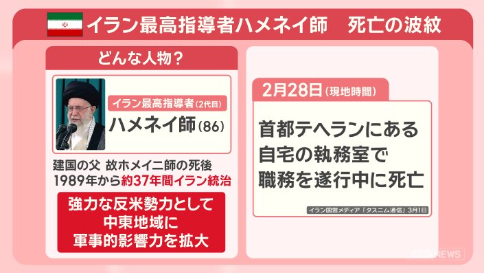 アメリカのイラン攻撃で最高指導者のハメネイ師が殺害されました。