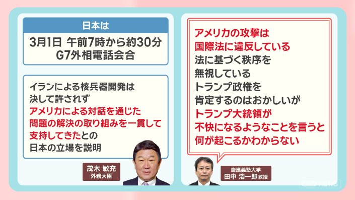 日本は3月1日午前7時から約30分、G7の外相の電話会合が開かれました。