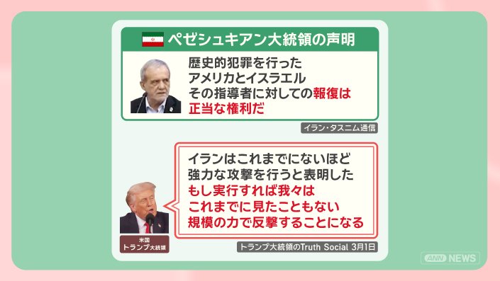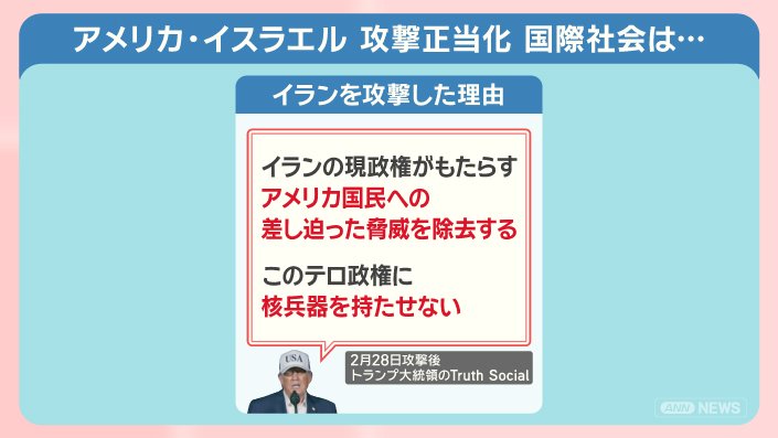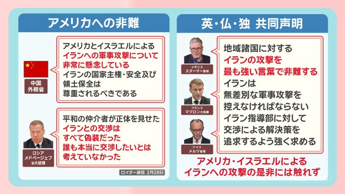 一方でアメリカ、イスラエルによるイランへの攻撃の是非には触れませんでした。