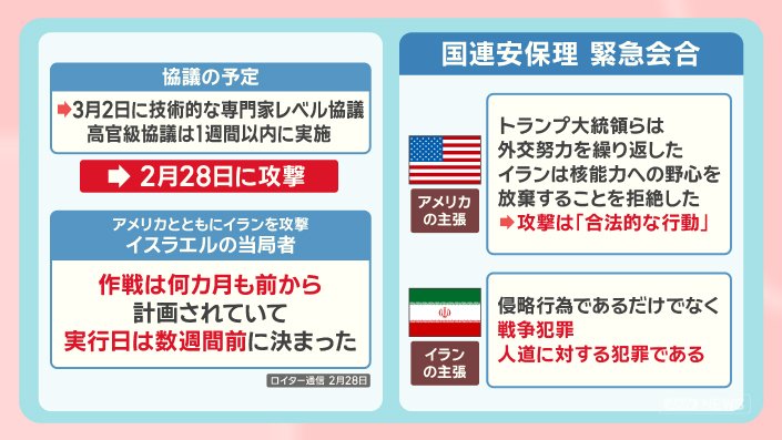 3月2日に、技術的な専門家レベルの協議をする予定で、高官級の協議が1週間以内に実施される予定でしたが、2月28日にイランへの攻撃が開始されました。