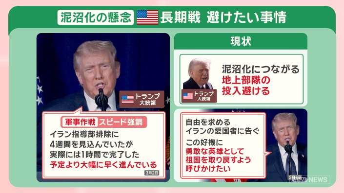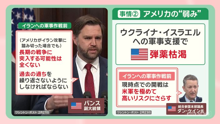 「(アメリカがイラン攻撃に踏み切った場合でも)長期の戦争に突入する可能性は、全くない。過去の過ちを繰り返さないようにしなければならない」と話しています。