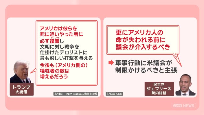 ■アメリカ イラン攻撃継続か 議会は反発 国内で支持されず