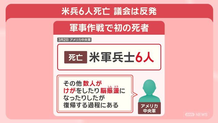 国防総省によると、アメリカ軍兵士6人が死亡。