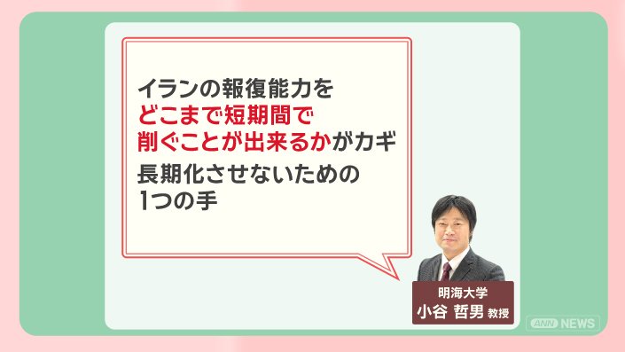 「イランの報復能力をどこまで短期間で削ぐことが出来るかがカギであり、長期化させないための1つの手」