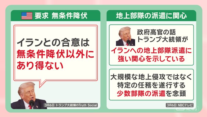 イラン情勢が緊迫する中、トランプ大統領がイランに『無条件降伏』を要求しました。