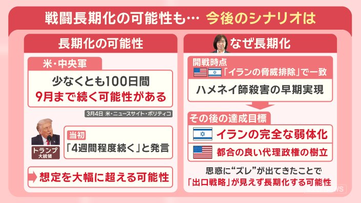 なぜ長期化するのか、錦田さんによると開戦時点では、アメリカとイスラエルは『イランの脅威排除』で一致して、ハメネイ師の殺害を早期に実現できたといいます。