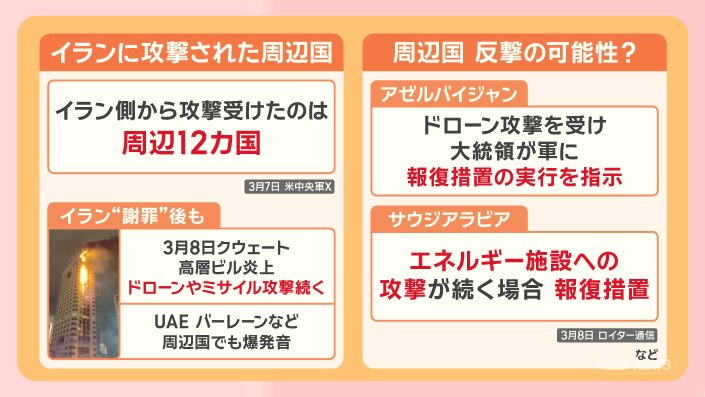 イランの攻撃は周辺国に及んでいます。