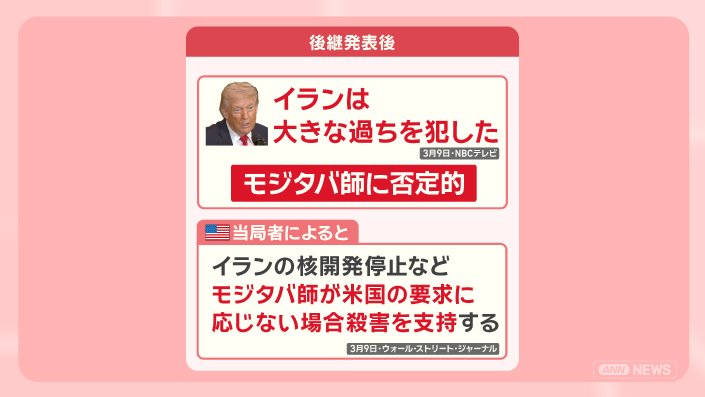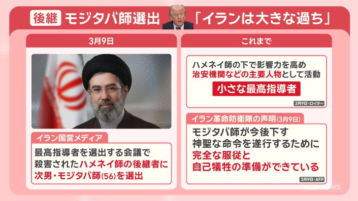 ■イラン 後継にモジタバ師選出 トランプ氏「大きな過ち」