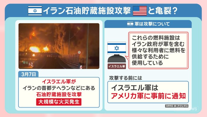 ■イスラエル イラン石油貯蔵施設攻撃でアメリカと亀裂?
