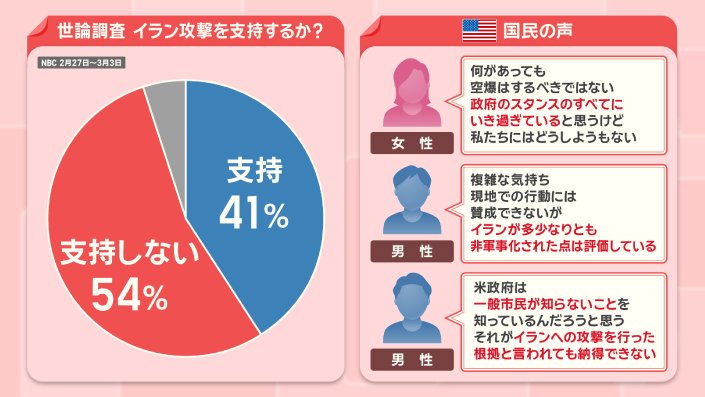 アメリカのNBCがイラン攻撃開始後に行った世論調査では、