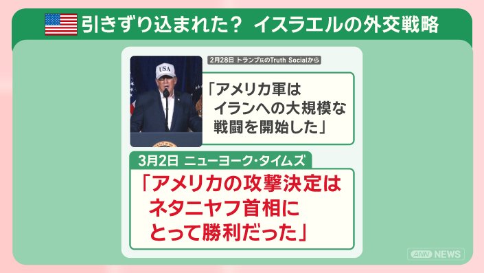 「アメリカの攻撃決定はネタニヤフ首相にとって勝利だった」と報じています。