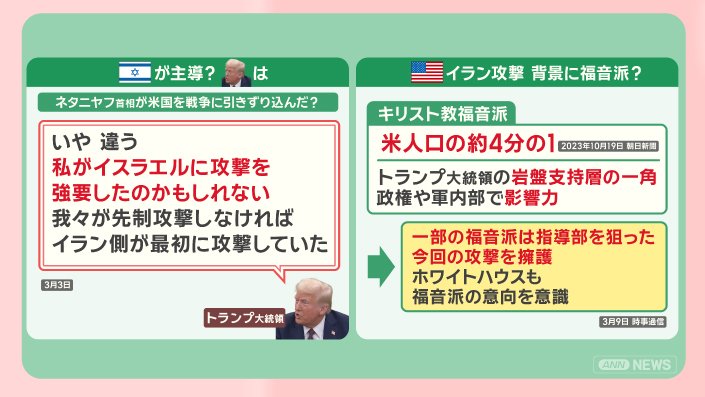 イランの攻撃の背景にいるのがキリスト教の福音派です。