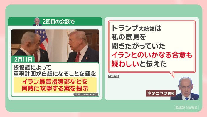 2月23日、ネタニヤフ首相からトランプ大統領にハメネイ師らイランの高官が2月28日に集まるという情報が伝えられます。