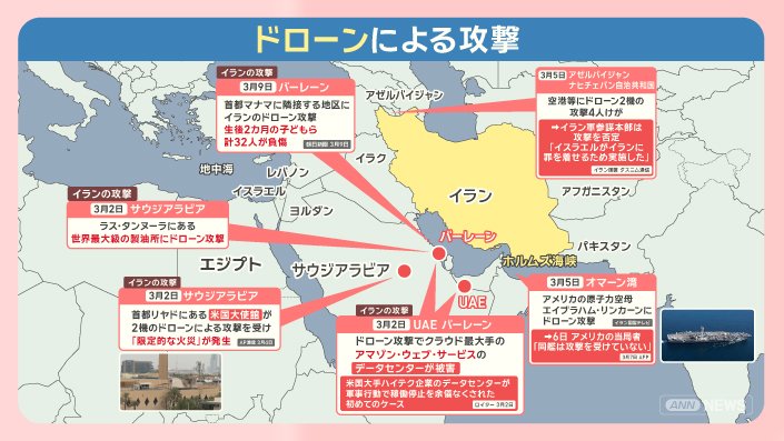 他にも、UAEとバーレーンの『データセンター』、サウジアラビアの『製油所』や『アメリカ大使館』などがドローンによる攻撃を受けています。