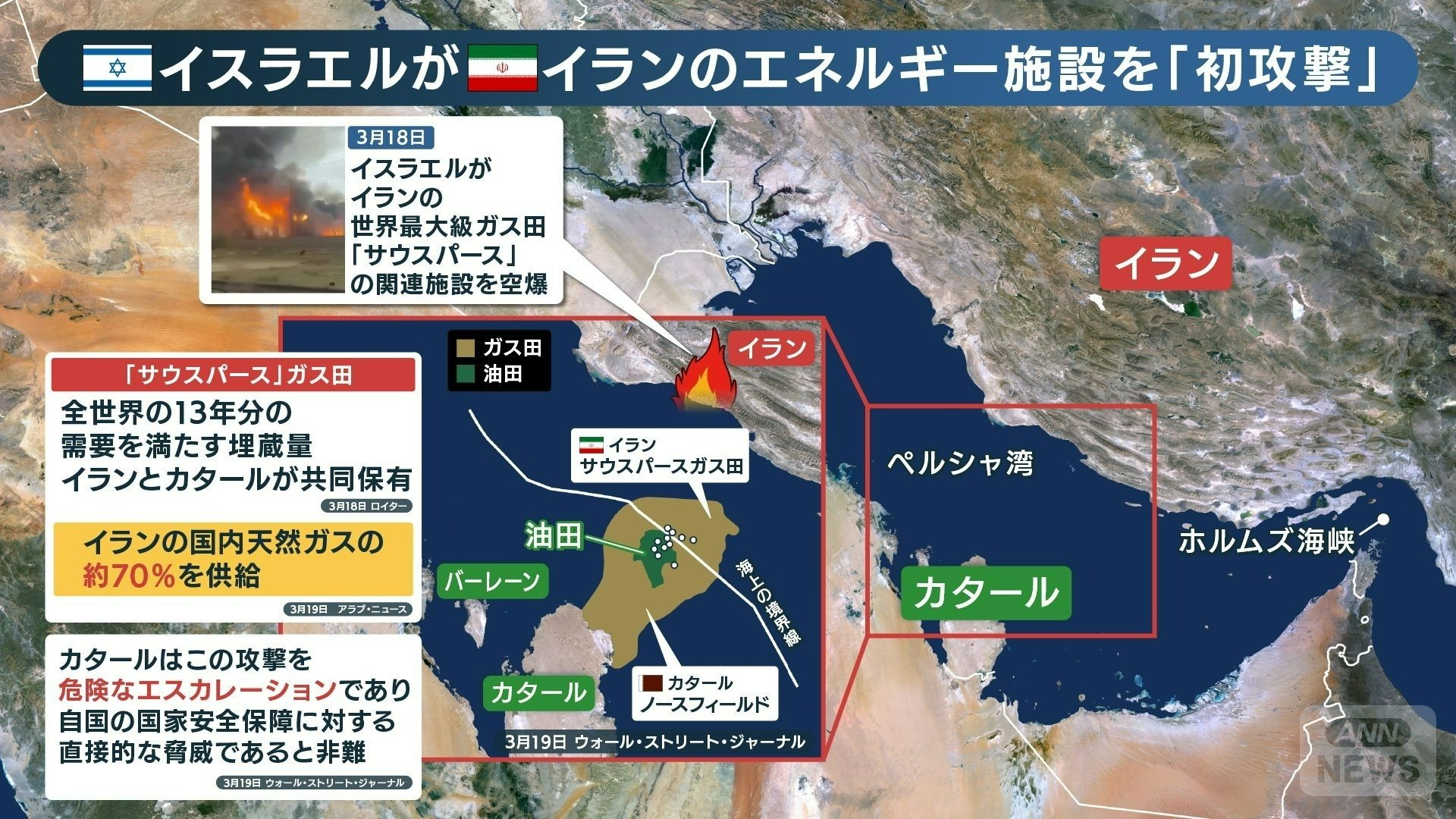 アメリカとイスラエルのイランに対する攻撃は、新たな段階へと突入していた。3月8日、イスラエル軍はペルシャ湾にあるイランの世界最大級ガス田「サウスパース」の関連施設を空爆。このガス田は全世界の13年分の需要を満たす埋蔵量で、イランとカタールが共同保有している。イランの国内天然ガスのおよそ70%を供給しており、イランにとっても世界にとっても非常に重要なガス田だ。