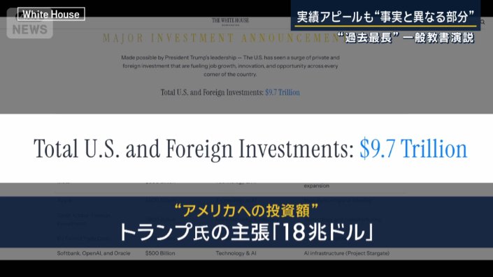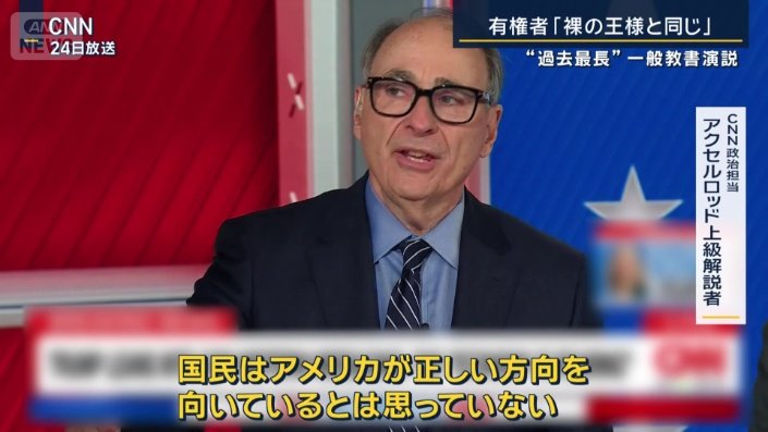 国際 報道ステーション 2026年2月26日 02:38 トランプ大統領は実績アピールも…有権者「裸の王様と同じ」“前代未聞”一般教書演説 2026年2月26日 02:38 写真 (1/13) 写真の記事を読む 広告 写真 (2/13) 写真の記事を読む 写真 (3/13) 写真の記事を読む 写真 (4/13) 写真の記事を読む 広告 写真 (5/13) 写真の記事を読む 写真 (6/13) 写真の記事を読む 写真 (7/13) 写真の記事を読む 広告 写真 (8/13) 写真の記事を読む 写真 (9/13) 写真の記事を読む 写真 (10/13) 写真の記事を読む 広告 写真 (11/13) 写真の記事を読む 写真 (12/13) 写真の記事を読む 写真 (13/13) 写真の記事を読む 広告 シェア スクープ投稿 この記事を読む トップ 国際 アメリカ ギャラリー