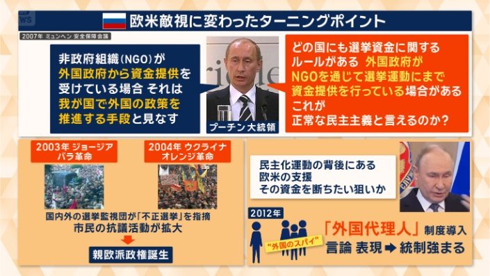 国際 ワイド!スクランブル 2026年2月27日 18:00 ウクライナ侵攻4年 プーチン大統領、欧米敵対の深層 ロシア“幻の民主化” 2026年2月27日 18:00 写真 (1/3) 欧米有名ミュージシャンがモスクワで公演も 写真の記事を読む 広告 写真 (2/3) 欧米敵視に変わったターニングポイント 写真の記事を読む 写真 (3/3) 欧米敵視に変わったターニングポイント 写真の記事を読む シェア スクープ投稿 この記事を読む トップ 国際 ヨーロッパ ギャラリー