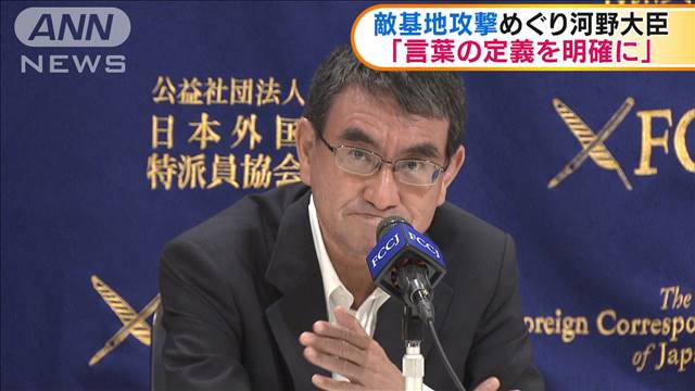 河野防衛大臣は今後のミサイル防衛の在り方を巡り「敵基地攻撃能力」などが議論されていることについて、まずは「言葉の定義を明確にすべきだ」と主張しました。