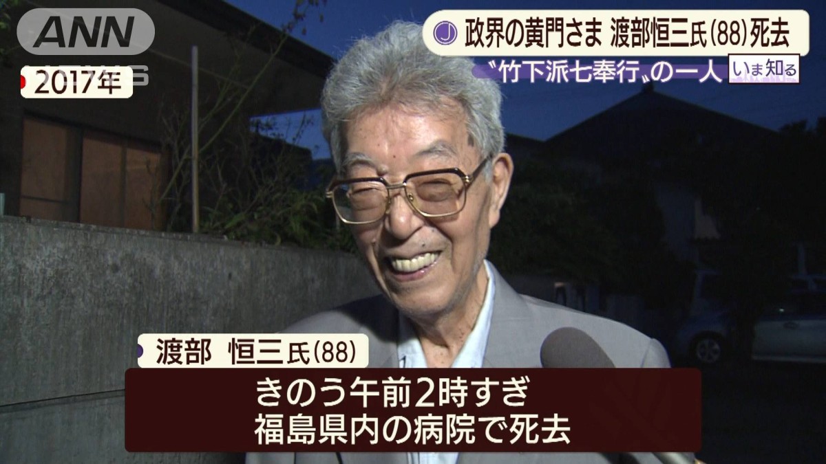 渡部氏は23日午前2時すぎ、福島県内の病院で亡くなりました。88歳でした。自民党時代には厚生大臣や通産大臣などを歴任し、「竹下派七奉行」の1人と目されました。そして1993年には、羽田孜氏や小沢一郎氏らとともに自民党を離党して新生党を結党しました。その後、衆議院副議長のほか、民主党の国対委員長などを務めて2012年に引退していました。