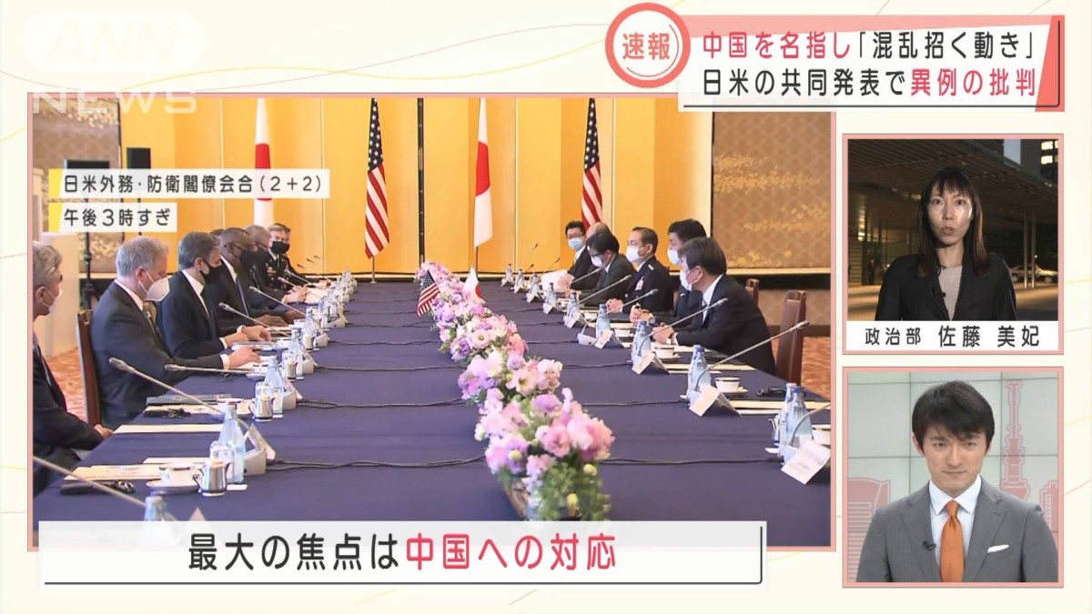 アメリカのバイデン政権が発足して初めて日米の外務・防衛の閣僚が会合を行いました。バイデン政権は主要閣僚の初の訪問先に日本を選んだわけですが、どんな話し合いが行われたのでしょうか。総理官邸前から報告です。
