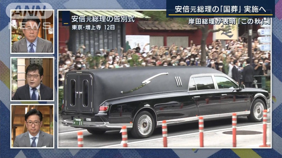 今回、法改正は行わず、今年の秋には国の儀式として『国葬』、正式には『国葬儀』を執り行えるよう、閣議決定する見込みです。