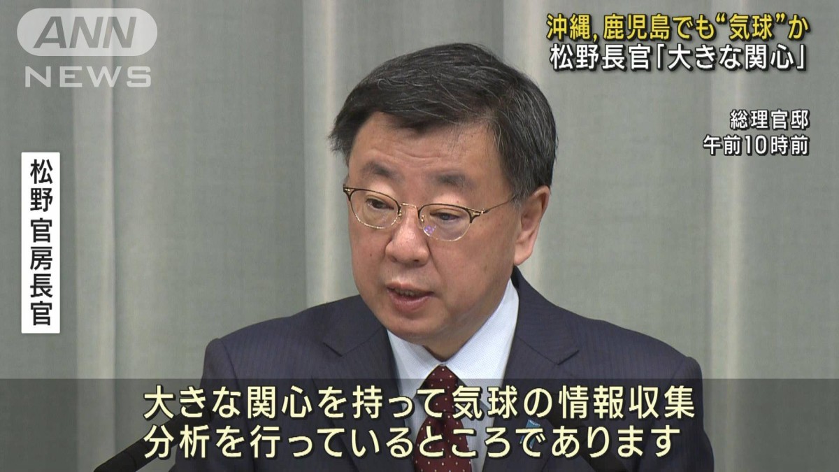 松野官房長官は過去に沖縄県や鹿児島県でも気球とみられる物体が目撃されたとの指摘を受け、「大きな関心を持って情報収集している」と強調しました。