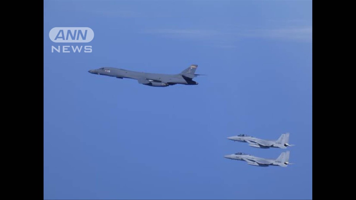 防衛省によりますと、日本海上の空域で30日行われた共同訓練には航空自衛隊のF15戦闘機4機、F2戦闘機8機とアメリカ軍のB−1爆撃機2機が参加しました。