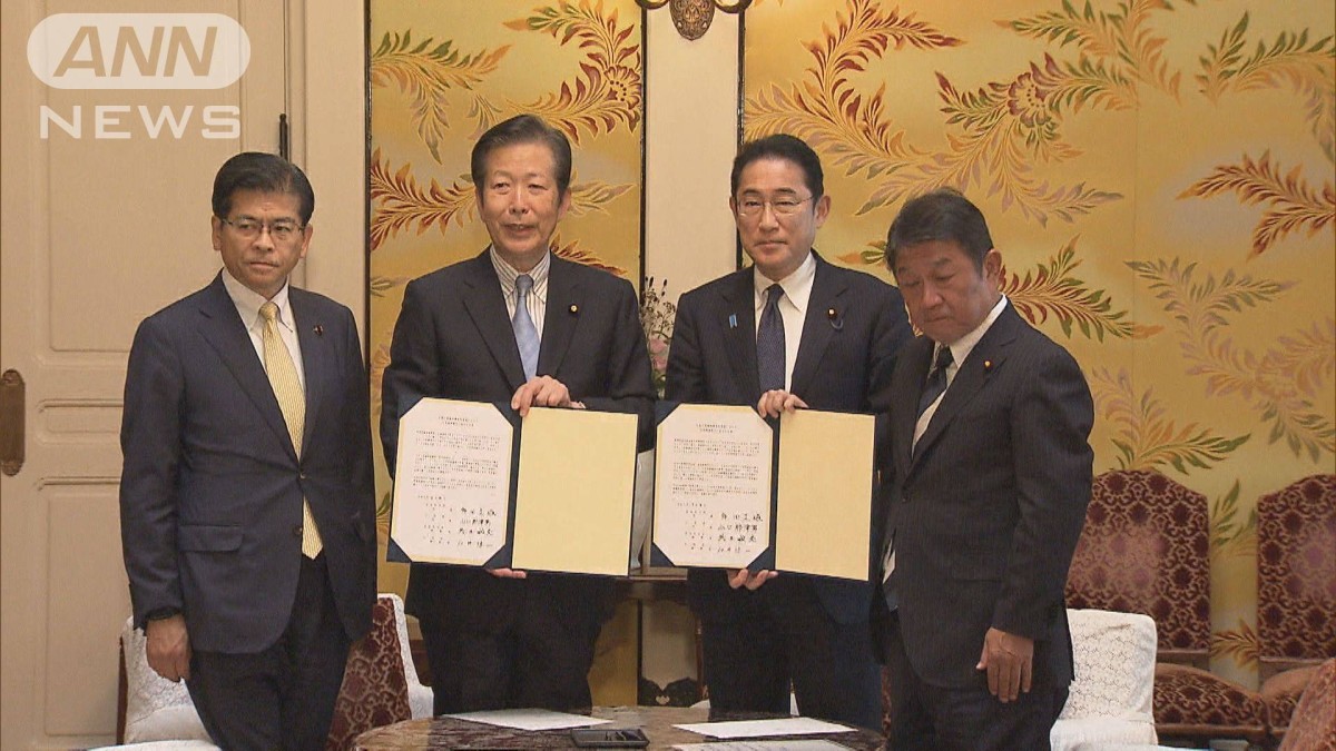 公明 山口代表:「この連立政権を与党両党が協力し合って安定を見出し、そしてまた課題を乗り越えていくと。こうした協力がこれからの政治にも必要なものだと、そうした大局観に立って今回の合意を結んだ」